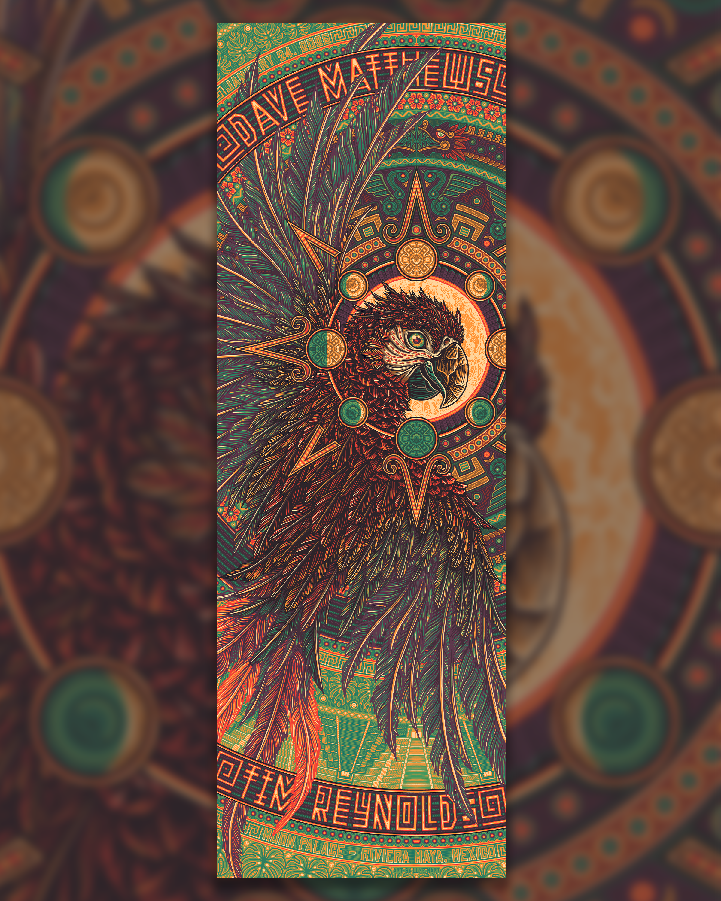 Excited to get the gig poster gears going in 2026 with some new work for Dave Matthews! Dave and Tim are doing their annual residency down in Mexico, and I was asked to put together a poster for Saturday night’s festivities. Been wanting to draw a scarlet macaw for a really long time now, so took this as an opportunity to blend the bird with some cosmic Mayan flavor and call it a day. For one reason or another, this was the most low-stress gig poster I’ve done in a really long time. Hopeful for more low-stress gigs in 2026.